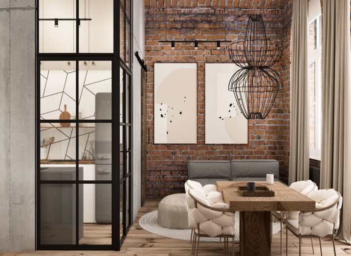 Taka aranżacja wnętrz stawia na otwarte przestrzenie pełne jasnych barw i światła oraz wyposażenie nawiązujące do stylu przemysłowego – połączenia szkła, metalu, ale też z naturalnych materiałów takich jak drewno czy cegła.