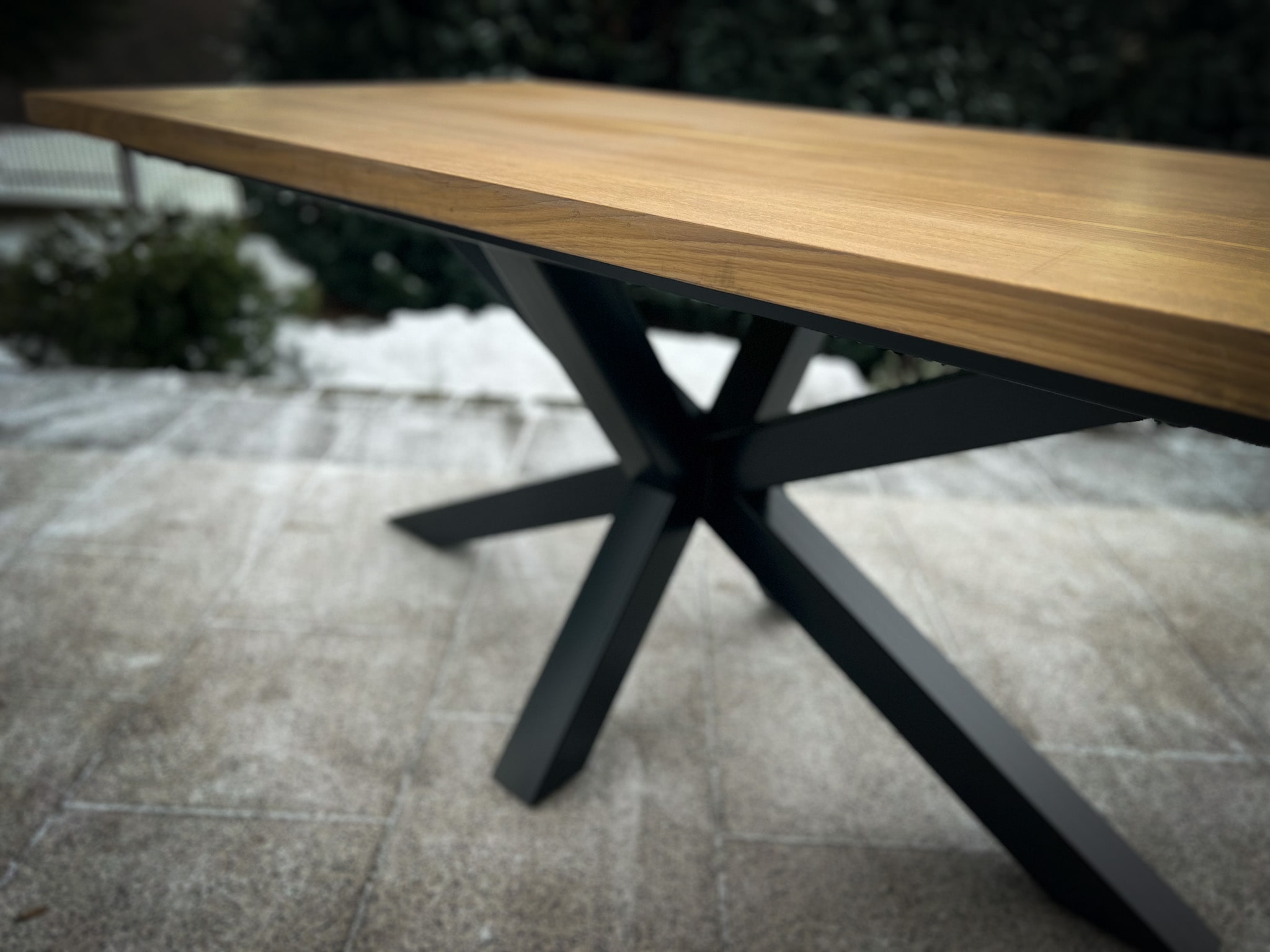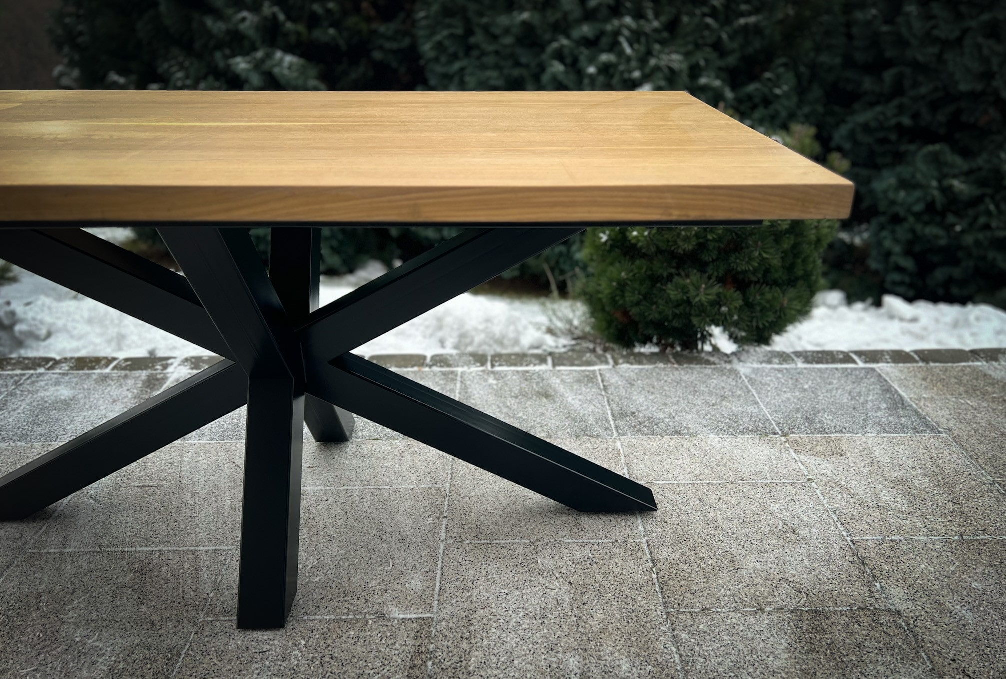 Blat dębowy o grubości 4 cm z naturalnym usłojeniem, wykończony bezbarwnym olejem, co podkreśla jego naturalne piękno i nadaje mu niepowtarzalny charakter.