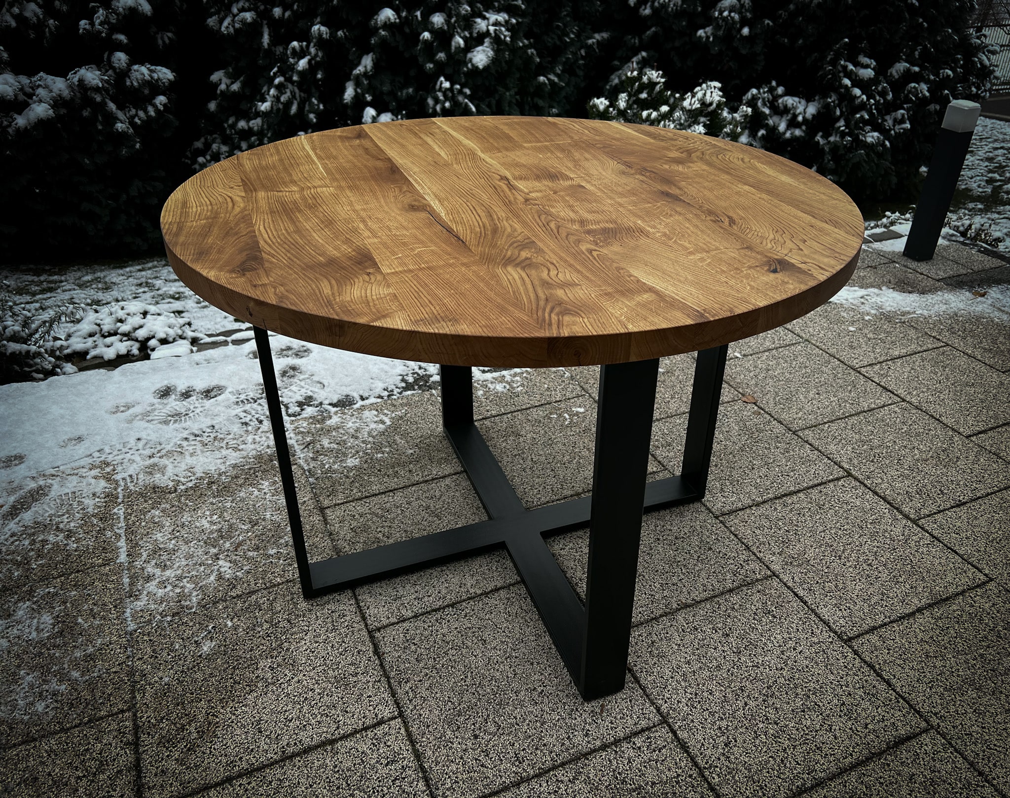 * Dostępne różne rodzaje blatówOkrągły stół na wymiar, z możliwością wykonania w każdym rozmiarze, często wybierany przez osoby które nie dysponują w mieszkaniu sporą ilością miejsca, poprzez swój kształt wpasuje się do mniejszych pomieszczeń.
